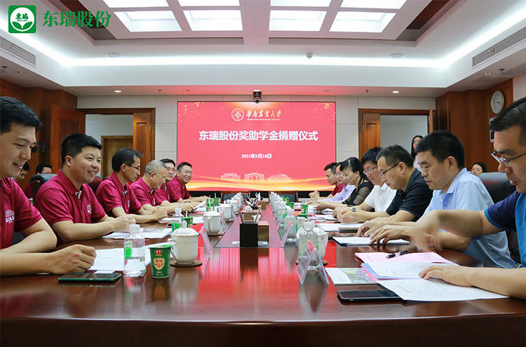 為促進華南農業大學畜牧獸醫教育事業發展,獎勵和資助優秀的大學生順利完成學業,向社會培養更多更好的優秀人才,東瑞食品集團股份有限公司(下稱東瑞股份)向華南農業大學獸醫學院、動物科學學院捐贈設立“東瑞獎助學金”,5年共捐贈人民幣100萬元。捐贈儀式于5月10日下午在華南農業大學(下稱華農大)行政樓隆重舉辦。